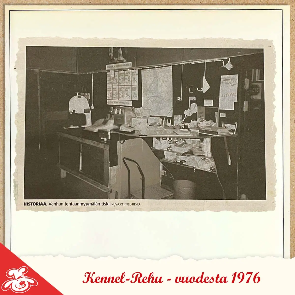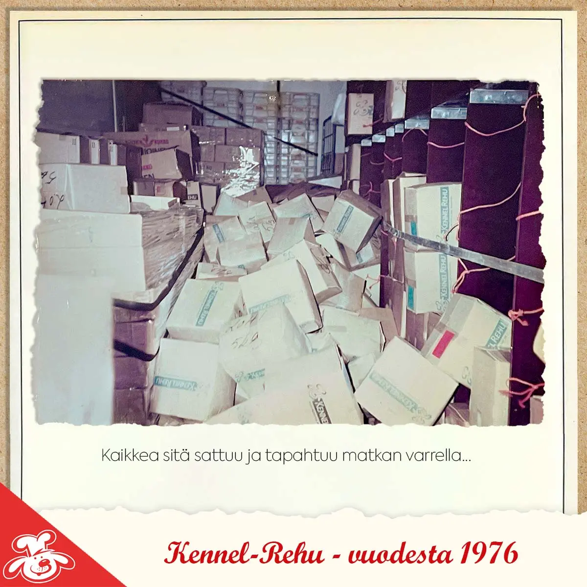 - Kuinka moni muistaa kuvassa näkyvät mainospohjat Koiramme-lehdestä? Ennen nettiä Kennel-Rehun ajoaikataulut julkaistiin Koiramme-lehdessä, josta kärppänä tarkistettiin seuraavat ajopäivät ja tilaukset soitettiin aina puhelimella suoraan tänne tehtaalle. Tilaukset kirjattiin käsin paperille. Moni asia on viidessäkymmenessä vuodessa muuttunut, mutta hyvin moni asia on pysynyt edelleen samana: Liha ja luut ovat aina 100 % suomalaisista raaka-aineista. Laatu, puhtaus ja hygienia ovat toiminnan kulmakiviä. Tilaukset toimitetaan omilla jakeluautoilla ympäri Suomen noutopysäkeille, tehtaalta suoraan asiakkaan käsiin toimitettuna. Yllättävän moni noutopysäkki on edelleen sama kuin esimerkiksi 15 tai 20 vuotta sitten. Miksi muuttaa hyviä asioita silloin, kun ne toimivat? Koira (ja kissa) tarvitsee edelleen lihaa!