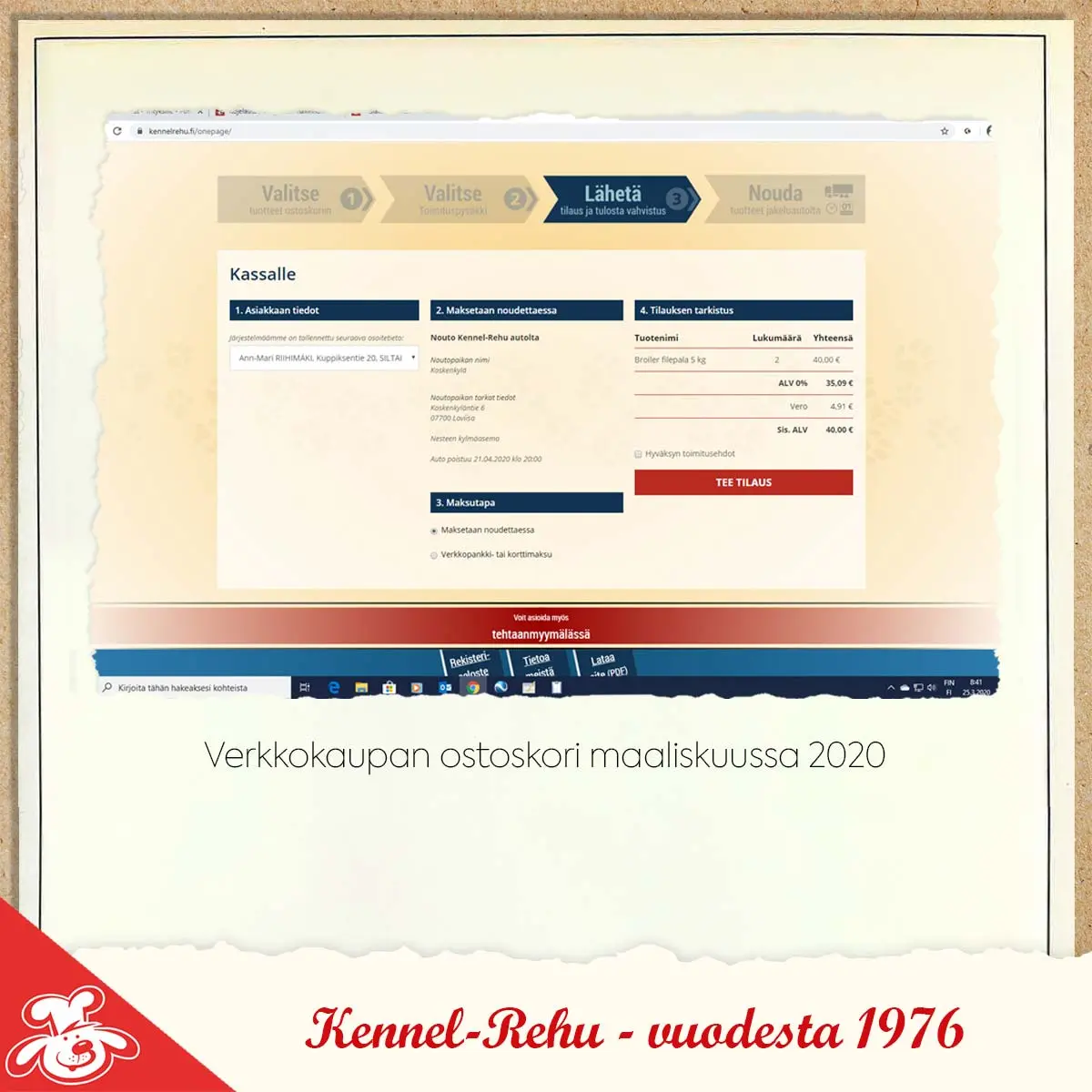 Ennen nettiä Kennel-Rehun ajoaikataulut julkaistiin Koiramme-lehdessä, josta kärppänä tarkistettiin seuraavat ajopäivät ja tilaukset soitettiin aina puhelimella suoraan tänne tehtaalle. Tilaukset kirjattiin käsin paperille.